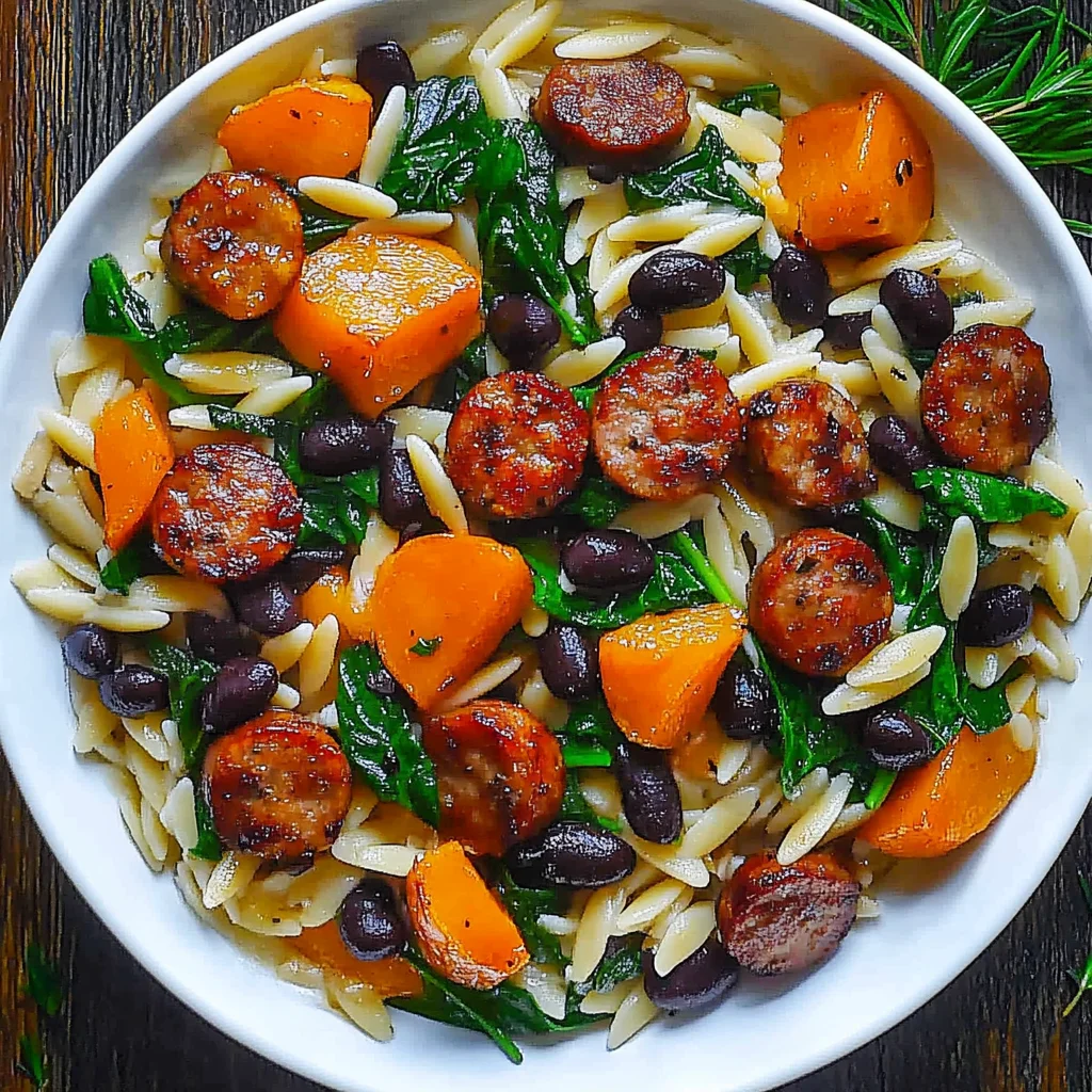 What are Butternut Squash and Black Bean Orzo with Sausage and Spinach?